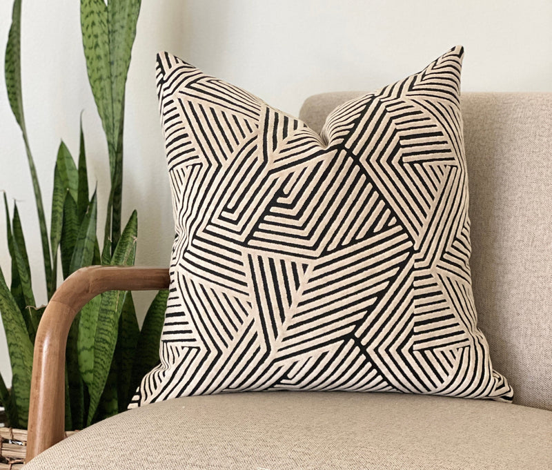 Sun Dial Pillow Cover - Cream and Black