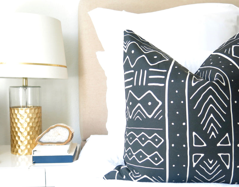Classic Colorblock Velvet Pillow Cover - Black & Ivory
