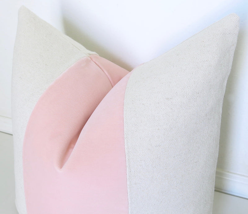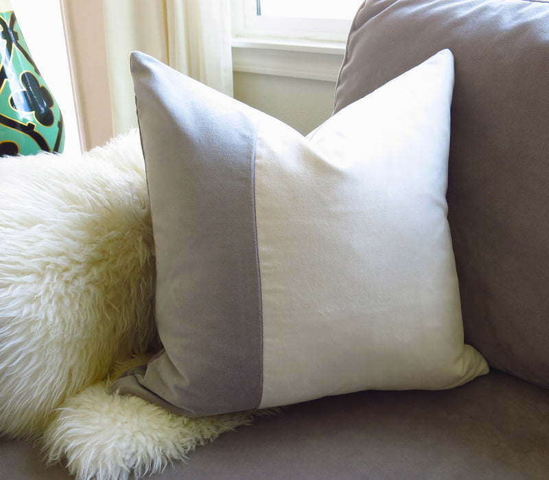 Classic Colorblock Velvet Pillow Cover - Gray & Ivory